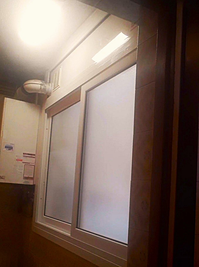 Uno de los desafíos técnicos de este proyecto en Montbau fue la coexistencia del cerramiento con las instalaciones de gas. Realizamos mecanizados específicos en el vidrio y el panel: orificios de precisión para las rejillas de ventilación y la salida del tubo de la caldera, cumpliendo rigurosamente con la normativa de seguridad vigente. Esta capacidad de personalización es habitual en nuestros trabajos, ya sean en la base de Horta-Guinardó, o en áreas colindantes como Vall d'Hebron y Sant Genís dels Agudells, donde la tipología de vivienda demanda soluciones análogas.