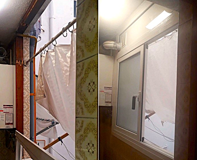 Retirada del antiguo cierre precario (cortinas o plásticos).